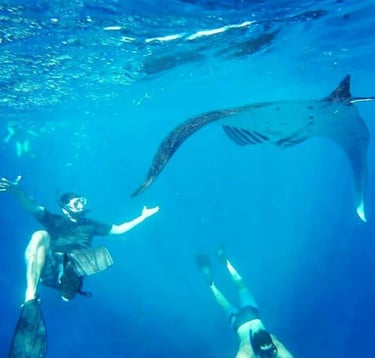 Após o café, seremos levados pelos nossos guias locais para uma aventura no mar. Equipados com snorkel e pés de pato, vamos viver a experiência indescritível de nadar com as Raias Mantas. Após esse passeio, iremos a outros incríveis pontos de mergulho nas redondezas. Caso você não curta ficar em barcos ou no mar, a opção é ficar relaxando no hotel, ou atravessar a ponte amarela para conhecer Nusa Ceningan. *Almoço incluso