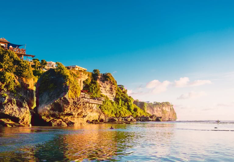 Depois do café, seremos transferidos de carro para a região de Uluwatu, onde ficaremos hospedados em um hotel que fica no topo do penhasco e tem uma vista deslumbrante. O restante do dia será livre para relaxar.