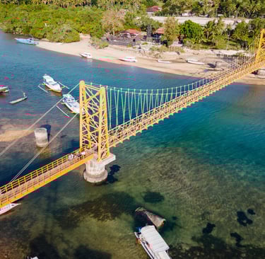 Nusa Lembongan está pertinho de Nusa Ceningan, uma ilha pequena mas muito bonita também. Cruze a famosa Ponte Amarela, curta o visual dos penhascos e explore e enseadas isoladas.