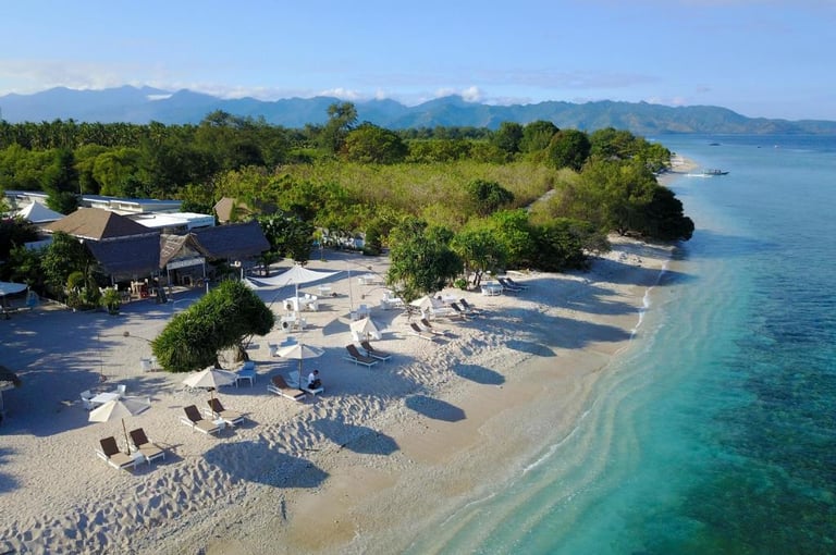 Esse pedacinho de paraíso no Oceano Índico, pertinho da costa noroeste de Lombok, é o lugar perfeito para quem curte praias de águas clarinhas de cor azul e uma vibe gostosa e relaxante de uma ilha pequena, sem carros e cheia de beleza natural.
