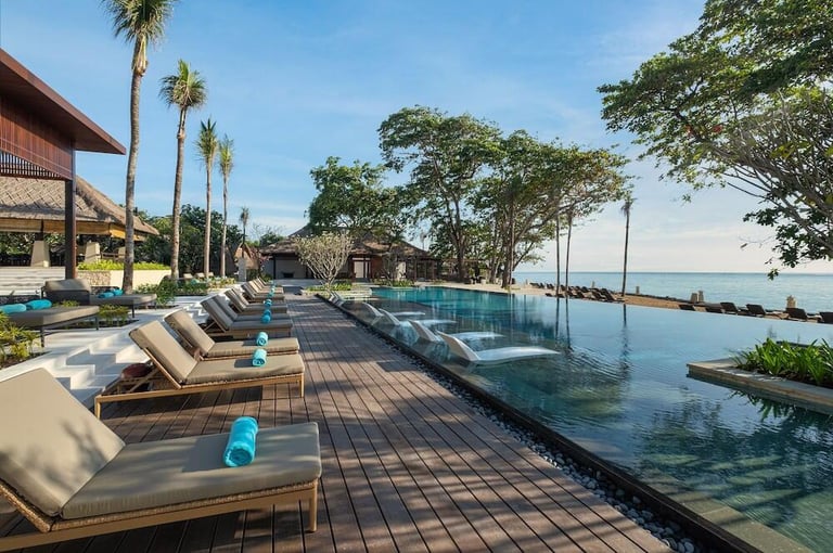 The Seminyak Beach Resort & Spa- hotel 5 estrelas de frente para o mar, com uma piscina de borda infinita com vista para o oceano. O hotel oferece muito conforto, sofisticação e está localizado ao lado do famoso restaurante e bar Ku De Ta. Clique aqui!